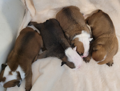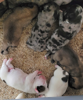 All puppies come with limited AKC registration papers, microchip, current vaccinations, and a one year health guarantee. Puppies can be picked up in Wamego, KS.